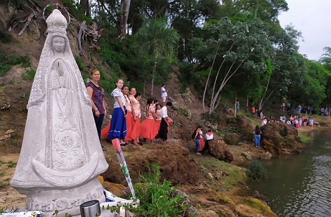 Información General | Al cumplirse un año de su localización a la vera del río, la imagen de yeso amaneció destruida por un acto vandálico. Instalaron una nueva y proyectan hacerla de cemento.
