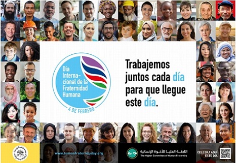Información General | El 4 de febrero se celebra el Día Internacional de la Fraternidad Humana. En esta jornada, desde la Iglesia Católica se propone profundizar, promover e implementar la Encíclica Fratelli tutti, como ayuda a construir la unidad de la Iglesia. Se propone tener espacios de oración personal y comunitaria, meditando sobre el documento.