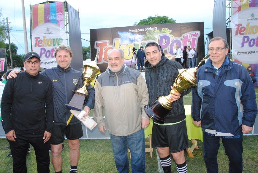 Política | La lluvia y el frío viento sur que surcó la capital correntina no fueron impedimento para que este lunes transcurra con éxito el denominado “Juego de las Estrellas”, en el marco del Programa Provincial “Tekové Potí”. El evento se concretó tal cual estaba previsto en el predio ubicado en Costanera Sur y puso frente a frente a las Glorias del fútbol argentino ante los campeones de la temporada 2015: Central Córdoba (Seniors) y Caramelo FC (Veteranos).