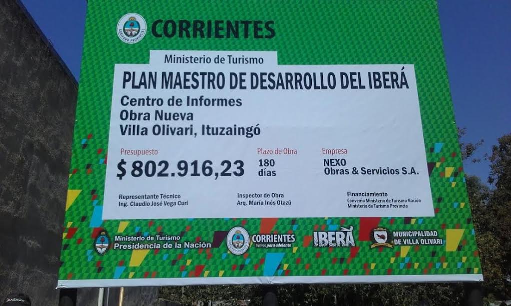 Política | Los alcances del Plan Maestro para el Desarrollo del Iberá incluyen obras, proyectos y programas que se llevarán a cabo en el territorio y guiará la inversión pública y privada, el desarrollo de las comunidades y sus emprendedores, como así también las acciones de gestión del área protegida. Es por ello que dichas localidades ya cuentan con su cartel de obra de los con el fin de generar las condiciones para asegurar el flujo de turistas durante todo el año.