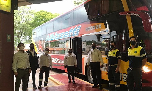 Información General | Personal de transporte de la comuna capitalina colabora con sus pares de la Dirección de Transporte de la Provincia realizando toma de temperatura a pasajeros y choferes en la reanudación del servicio entre Goya-Corrientes.