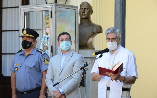 Información General | El obispo auxiliar de la Arquidiócesis de Corrientes, monseñor José Adolfo Larregain, visitó este martes el edificio del Ministerio de Seguridad de la Provincia donde ofreció la celebración de la palabra, bendijo a los trabajadores y el pesebre con la Sagrada Familia en vísperas de la Navidad.