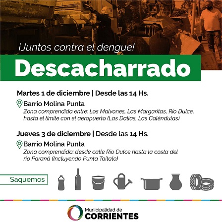 Información General | Durante esta semana el operativo de descacharrado se desarrollará en el Barrio Molina Punta durante los días martes y jueves. Con este recorrido se finaliza toda la zona Norte de la capital hasta la ruta y sobre el río.