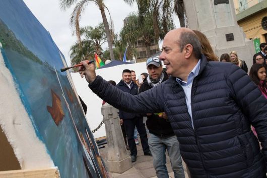 Política | La semana pasada, en el marco del 3er. Encuentro de Arte Público de los Pueblos Libres, el Vicegobernador de la provincia Dr. Gustavo Canteros, se acerco a saludar a los muralistas que estaban pintando dipticos en el paseo Italia, frente al Colegio Yapeyú.