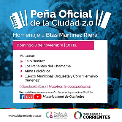 Información General | Con una variada oferta de artistas chamameceros, este domingo a través del canal de YouTube y Facebook del municipio se podrá disfrutar de una nueva edición de la Peña de la Ciudad 2.0.