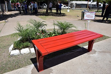 Información General | De ahora en adelante, la plazoleta ubicada en Mendoza y Exvías llevará el nombre de la mujer que fuera asesinada por su expareja. El evento se desarrolló este miércoles 28, día en que se cumple un año del crimen. En la ocasión, el intendente inauguró además un banco rojo, símbolo de concientización en contra de la violencia de género que se lleva adelante en varias ciudades del mundo.