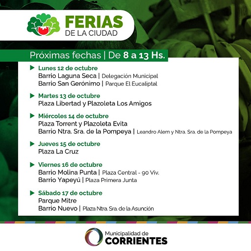 Información General | De 8 a 13, durante toda la semana las Ferias acercarán productos frescos, saludables y a precios accesibles en diferentes puntos de la ciudad. En todos los espacios de comercialización rige un estricto protocolo de seguridad en el marco de las medidas de prevención sanitaria por el Covid-19.