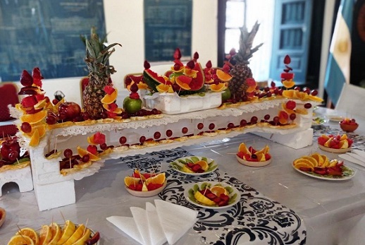 Información General | En plena pandemia y bajo estrictos protocolos, para no dejar pasar la oportunidad para reivindicar antiguas creencias se llevó a cabo una representación simbólica, con platos típicos y mesa de frutas tropicales en Casa Molinas. Actuó además el elenco municipal "Corrientes Norte".