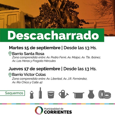 Información General | En el marco de las acciones preventivas, este martes a partir de las 13, las cuadrillas municipales estarán recorriendo el barrio Santa Rosa para retirar los elementos que puedan acumular agua y sean posibles focos para la reproducción del mosquito vector del dengue. Entre tanto, el jueves las acciones se replicarán en el Víctor Colas.