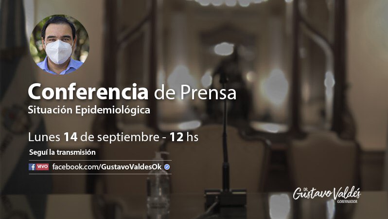 Información General | Este lunes a las 12 en Casa de Gobierno se realizará una conferencia de prensa convocada por el gobernador Gustavo Valdés para brindar detalles sobre la situación epidemiológica de la provincia de Corrientes.