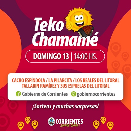 Información General | Este domingo 13, desde las 14, se llevará adelante el programa provincial denominado Teko Chamamé, a través de las plataformas oficiales del Gobierno de Corrientes, por Instagram y Facebook.
