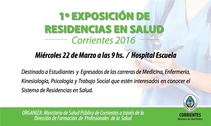 Política | El espacio servirá para dar a conocer las distintas especialidadeps del Sistema de residencias en Corrientes. La misma se desarrollara el 22 de marzo en el Salón Auditorio del Hospital Escuela. Actualmente hay más de 300 médicos formándose en las diversas especialidades.