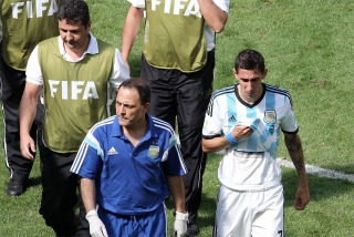 Deportes | El mediocampista del seleccionado argentino Angel Di María sufrió una lesión en el muslo derecho que, de acuerdo con las estimaciones del cuerpo médico, sería un desgarro y lo dejaría fuera del Mundial Brasil 2014.
