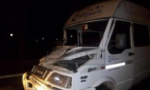 Policiales | La combi que trasladaba al grupo de música tropical, a 10 kilómetros de la localidad de Saladas, esta madrugada impactó contra un caballo negro, muriendo instantáneamente el animal e hiriendo a 2 de los ocupantes del rodado. Se dirigían a Mburucuyá para dar un espectáculo.