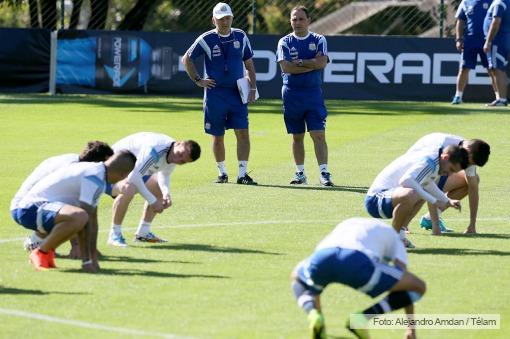 Deportes | El DT de la Selección, Alejandro Sabella, no dio indicios en el comienzo la práctica de hoy sobre quién será el atacante que acompañe a Messi y Aguero para el primer partido en el Mundial ante Bosnia. Palacio trabajó diferenciado.