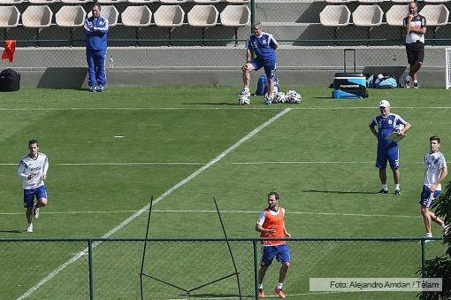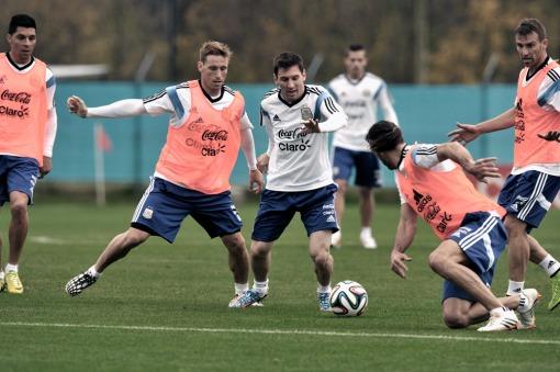 Deportes | El equipo que conduce Alejandro Sabella lleva adelante una nueva práctica de cara al debut contra Bosnia el domingo en Río de Janeiro. Messi, el más buscado por argentinos y brasileños.