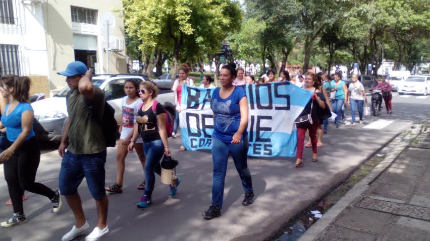 Política | Integrantes del movimiento Barrios de Pie marcharon este martes hasta la Gerencia de Empleo y Capacitación Laboral, delegación Corrientes. Piden al Ministerio de Trabajo de la Nación, garantice la continuidad del programa de entrenamiento para el trabajo.
