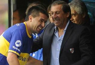 Deportes | Riquelme se acercó al banco de River y el DT le hizo un pedido al oído. El capitán de Boca lo escuchó y le sonrió. ¿Será el último clásico de Román?