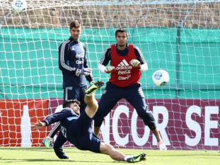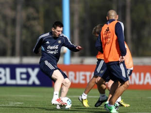 Deportes | En el último entrenamiento previo al partido con Colombia, que se llevará a cabo desde las 19.05 de mañana en el Monumental, "Pachorra" aceitó los detalles pertinentes con el equipo. Como se esperaba, la "Pulga" no arriesgará su físico y entraría desde el banco en caso de urgencia. En Ezeiza, Walter Montillo se ganó la confianza del DT y también un lugar entre los 11 iniciales. Además, Biglia suplantará a Gago