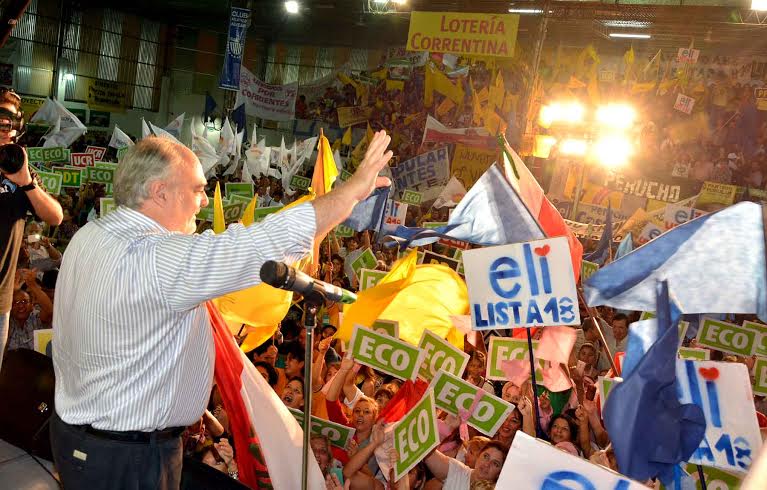 Política | Ricardo Colombi cerró el acto de presentación de los candidatos de Encuentro por Corrientes para la elección legislativa del próximo 5 de julio, el mismo se concretó en la cancha de Básquet del Club Alvear situado en el barrio Aldana de esta ciudad, ante una multitud que colmaron las instalaciones deportivas, el mandatario provincial además de brindar ampliamente los fundamentos del por que la alianza que conforman entre otros el Radicalismo, Partido Popular, Encuentro Liberal, Proyecto Corrientes, debe triunfar en la mencionada contienda electoral, también destacó con firmeza que la concordia, paz social, correcta situación financiera e igualdad de oportunidades que distinguen hoy a Corrientes, deben servir para de una vez por todas decirle nunca más a una Intervención Federal.
