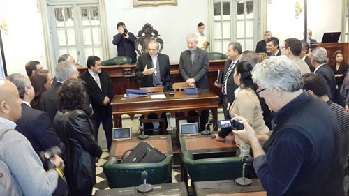 Política | Como clara muestra y ejemplo de la predisposición para generar climas de diálogo y consenso, Monseñor Andrés Stanovnik y Monseñor Jorge Casaretto aceptaron la invitación de Pedro Cassani de visitar la Cámara de Diputados. El encuentro fue previo a la sesión de tablas. Cada legislador tuvo la posibilidad de intercambiar ideas con los Obispos. También hubo bendición.