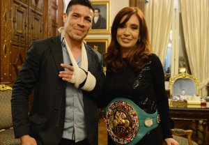 Deportes | Con la zurda enyesada, Maravilla Martínez visitó a la presidente Cristina Kirchner y le prestó por un ratito el cinturón de campeón, que retuvo frente al inglés Murray en Vélez.