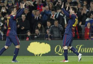 Deportes | La Pulga marcó un doblete y dio una asistencia en el 3-1 de Barcelona ante el Rayo Vallecano del Chori Domínguez. El rosarino llegó a 42 goles en la liga y acumula 18 partidos al hilo con presencia en la red rival.