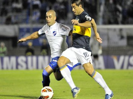 Deportes | Con un penal de Riquelme, Boca venció a Nacional por 1-0 y los locales siguen sin poder ganar en el Grupo 1. El Xeneize jugó un tiempo y medio con 10 por la roja de Chiqui Pérez, mientras que los charrúas fallaron un penal cuando estaban en cero.