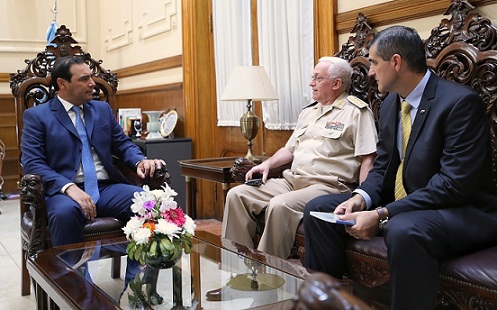 Información General | El gobernador Gustavo Valdés recibió este miércoles al prefecto general Osvaldo Daporta, flamante director de la Región Norte de la Prefectura Naval Argentina, quien se presentó ante el mandatario provincial para cumplir con el saludo protocolar que impone la nueva función. El prefecturiano se puso a disposición en la ocasión para el trabajo en conjunto con la Policía de Corrientes y ratificó la desmentida judicial sobre el involucramiento al gobernador correntino en un caso de narcotráfico, mediante una falsa noticia.
