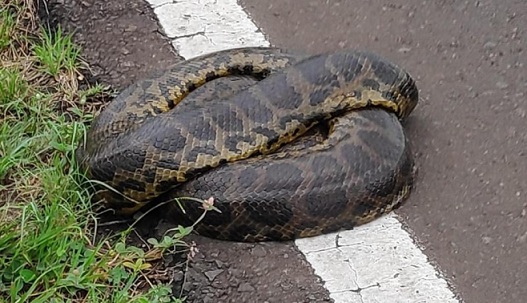 Información General | Una familia obereña regresaba el último martes a la tarde de Itá Ibaté, cuando detectó una víbora de la especie curiyú, aparentemente adulta, sobre la ruta nacional 12.