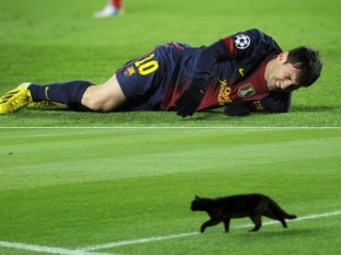 Deportes | Una foto del encuentro entre Barcelona y Benfica por la Champions League, revela que un gato negro se paseó por el campo de juego del Camp Nou, justamente el día en el que la “Pulga” sufrió una lesión en su rodilla, que preocupó al mundo.