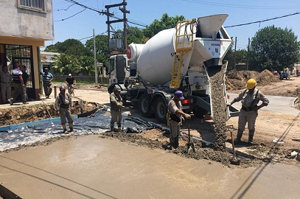 Información General | La Provincia intensifica los trabajos de pavimentación en la calle Colombia del barrio Bañado Norte tras el periodo de lluvia que se registró en la zona y que complicara la continuación de estas obras. Actualmente se está colando hormigón en las bocacalles de dicha arteria con José Rolón, para luego proseguir luego hasta calle José Mármol. Serán más de 600 metros lineales de pavimento.