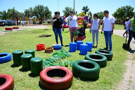Información General | Estudiantes del Colegio Secundario Apipé realizaron la fabricación de cestos ecológicos con material reciclable. Los mismos son los ganadores del Programa Mita Jóvenes por el Medio. También en la jornada se plantaron árboles autóctonos en el barrio.