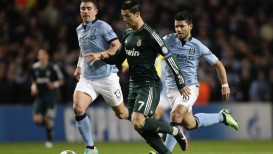 Deportes | El Kun marcó de penal, pero el equipo inglés empató 1-1 con el Real Madrid y no tiene chance de avanzar a los octavos de final. Al Merengue le alcanzó para meterse entre los 16 mejores como segundo del Borussia, que goleó al Ajax.