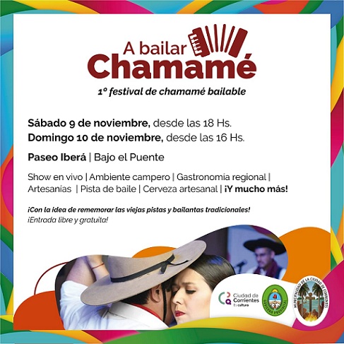 Información General | Con esta iniciativa se busca trasmitir el sentir genuino que se expresa a través del baile donde el pueblo chamamecero profesa su culto, donde las fibras se conmueven con un sapucay en medio de la polvareda. Por ello, la Municipalidad llevará adelante el sábado 9, desde las 18 y el domingo 10, desde las 16 en el Paseo Iberá una propuesta que incluirá, además de grupos musicales y de baile; artesanías, gastronomía típica, cervecería artesanal y otras ofertas para toda la familia.