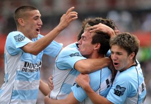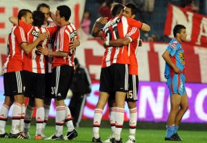 Deportes | La Lepra se impuso por 2-1 en el Cementerio con goles de Scocco (PT 12m) y Cáceres (ST 16m), y le sacó un punto de ventaja al escolta Vélez. El descuento de Mugni (ST 27m) no le bastó al Sabalero, que acumuló su tercer partido sin ganar.
