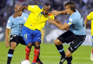Deportes | El equipo de Rueda festejaba con un penal de Caicedo, pero la Celeste emparejó por intermedio de Cavani. Los ecuatorianos, que terminaron con diez por la expulsión de Valencia, son líderes provisorios de las Eliminatorias.