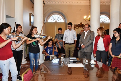 Información General | El intendente compartió un grato momento con los chicos, oriundos de Asunción, que construyen sus propios instrumentos con materiales reciclados de la basura. Declaró de interés municipal su presentación en la ciudad y destacó “la revalorización de la música como inclusión social, su aporte a la sustentabilidad ambiental y la renovación de los lazos con el pueblo paraguayo”.