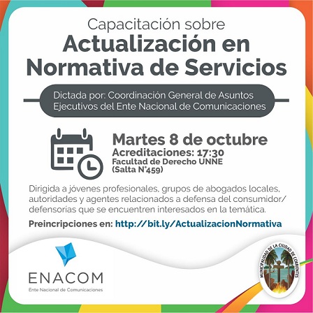 Información General | Se realizará el martes 8 por la tarde en la Facultad de Derecho de la UNNE, ubicada por calle Salta, y es organizado por la subsecretaría de Modernización municipal. Está dirigido a jóvenes profesionales, grupos de abogados, autoridades y agentes relacionados a defensa del consumidor/defensorías, usuarios y público en general interesados.