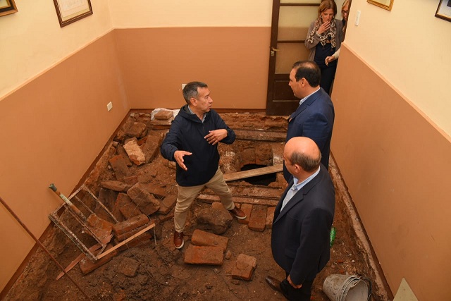Información General | El gobernador Gustavo Valdés visitó el palacio Legislativo, donde fue recibido por el vicegobernador Gustavo Canteros, el Presidente del Instituto de Cultura, arquitecto Gabriel Romero y las especialistas Marisol Maciel y María del Carmen Núñez Camelino, a fin de interiorizarse acerca del hallazgo encontrado en un proceso de refacción del edificio.