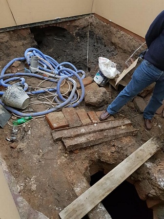 Información General | El hallazgo fue hace unas dos semanas aproximadamente, pero tomó estado público recién ayer. En las imágenes se puede distinguir una suerte de aljibe y un arco romano de medio punto. Trabajan en el lugar.