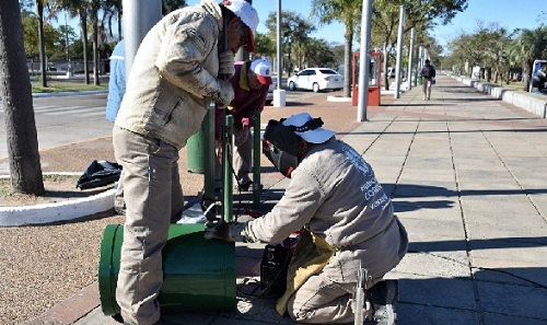 Información General | Se colocarán alrededor de 80 unidades en todo el paseo costero. Cuadrillas municipales iniciaron esta semana los trabajos sobre la Costanera Sur “Juan Pablo II”, mientras en los próximos días se avanzará por la avenida Costanera General San Martín. Además, se están realizando tareas de ornamentación en los parterres centrales.