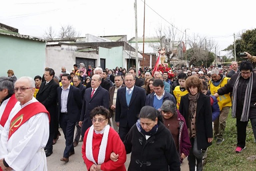 Información General | El vicegobernador Gustavo Canteros compartió con la comunidad de San Pantaleón la celebración religiosa por el día del Patrono de los Enfermos, una festividad multitudinaria que ya es tradición en el barrio Laguna Seca y hasta la cual llegó para “acompañar a los vecinos en la procesión”.