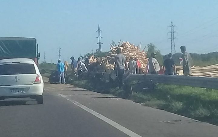 Información General | Un grupo de vecinos de la zona del Barrio De los Pescadores, en el acceso del lado chaqueño al puente General Belgrano, aprovechó la lamentable circunstancia tras el cuádruple choque de esta mañana y se llevó la madera que llevaba el camión que protagonizó el incidente.