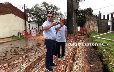 Información General | Por expresas instrucciones del Gobernador Gustavo Valdés, el Secretario de Deportes de la Provincia, Jorge Terrile, recorrió este viernes la cancha del Club Lipton FC, donde parte del muro perimetral cedió a causa de las intensas precipitaciones. Posteriormente, ya en el Club Libertad, supervisó las obras de reconstrucción del muro perimetral que había caído también por efecto de las lluvias.