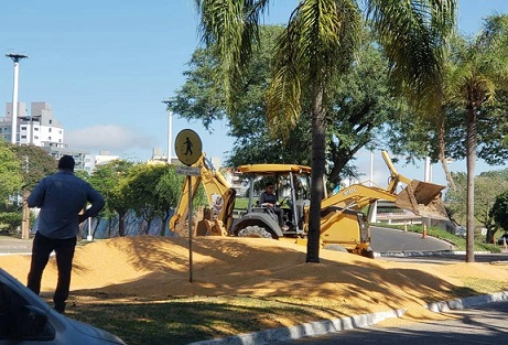 Información General | Un camión que bajaba del puente General Belgrano, volcó al ingresar a la avenida 3 de Abril. El vehículo, un Mercedes Benz 1114, que llevaba mil kilos de maíz, perdió el control y terminó volcando sobre el viaducto. Algunas personas se acercaron al lugar para llevar maíz. Ahora,efectivos policiales, impiden que continúen llevándose la carga.Tras el incidente, el único paso habilitado es por avenida Costanera.