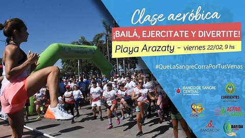 Información General | El Banco de Sangre Central de Corrientes realizará una clase aeróbica abierta a todo el público este viernes 22 de febrero en la Playa Arazaty a partir de las 9 horas. La actividad se encuadra en el cierre de la Campaña de Verano y es organizada de manera conjunta con otros organismos de salud.