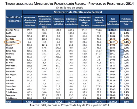 Política | Se trata de los programas de infraestructura que canaliza el Ministerio de Planificación Federal para viviendas, servicios básicos, urbanización, escuelas y rutas. A la jurisdicción correntina le asignaron sólo 133 millones de pesos mientras que Formosa recibiría más de 900 millones, siete veces más pese a tener la mitad de habitantes. Para Chaco hay previsto 540 millones y otros 530 millones de pesos para Misiones. Las más beneficiadas a nivel país son Buenos Aires, Entre Ríos y Tucumán, alineadas políticamente al Gobierno Nacional.