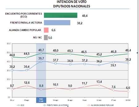 Política | Un nuevo sondeo difundido ayer por Enrique Zuleta Puceiro ratifica un triunfo del oficialismo provincial por 48,4 a 38,2 por ciento de los votos. La diferencia se amplió en 1,6 por ciento en relación con la consulta de la semana pasada.