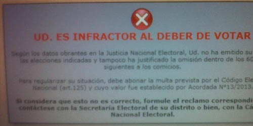 Política | La Justicia Nacional Electoral habilitó para su consulta el registro de infractores de quienes no votaron, que contiene la información sobre quiénes emitieron su sufragio el 11 de agosto y quiénes no, por lo que deberán regularizar su situación. Mañana vence el plazo para justificar el no voto.
